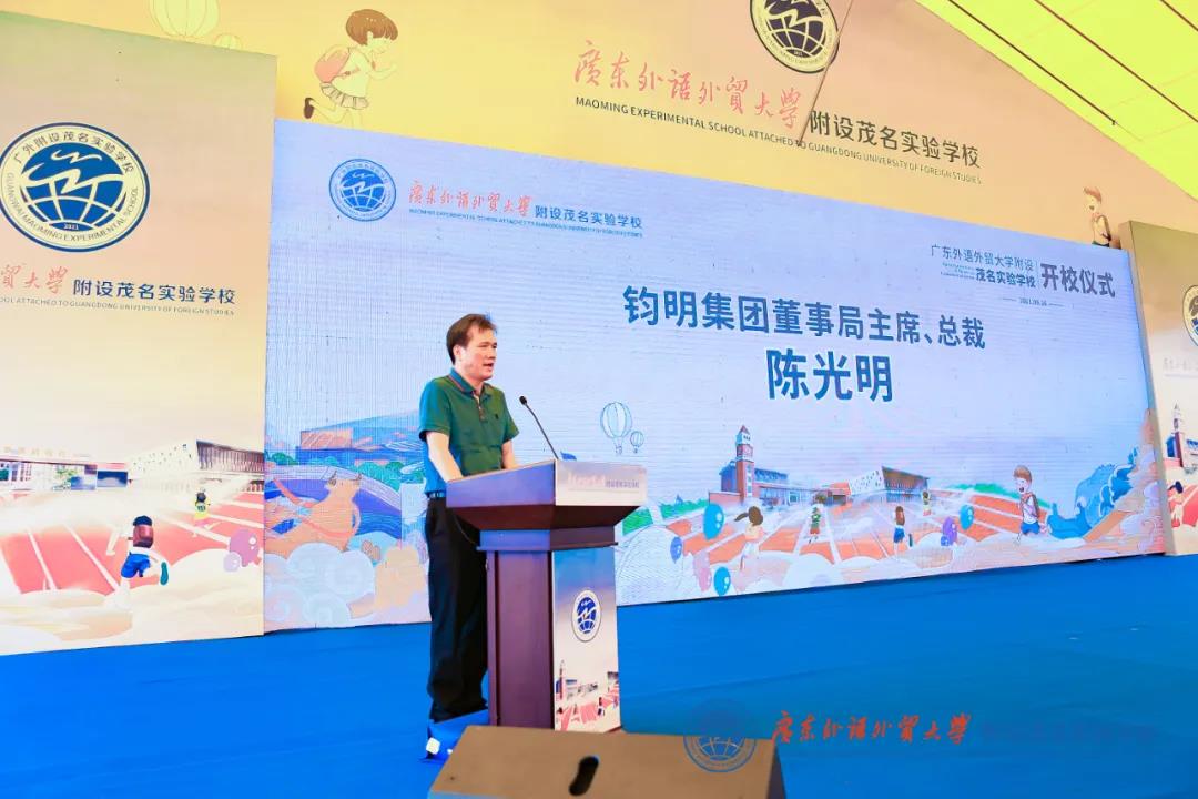 钧明集团董事局主席、总裁陈光明、茂南区委书记廖述毅分别致辞,他们都表示,相信在广外教育集团的管理下,广外附设茂名实验学校一定能够成为茂名市乃至广东省的特色名校。