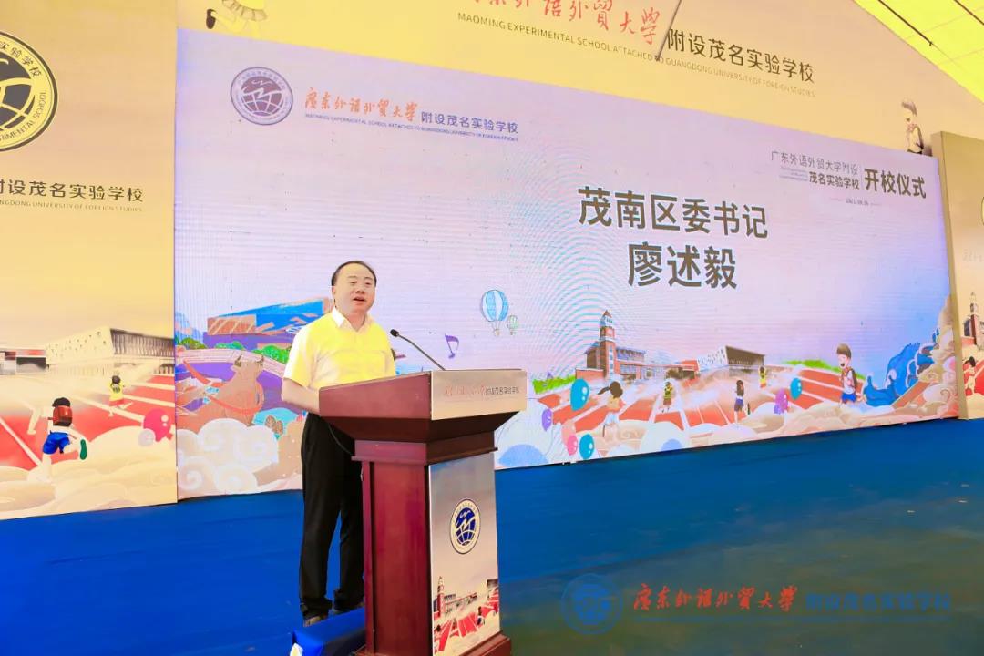 茂名市相关领导、广东外语外贸大学副校长刘建达、茂名市政协副主席邵杭伟,茂南区委书记廖述毅、广外教育集团总经理孙远雷、钧明集团董事局主席、总裁陈光明,以及茂名市教育局,茂南区委、区政府,茂南区教育局的相关领导出席活动,并为学校揭牌。