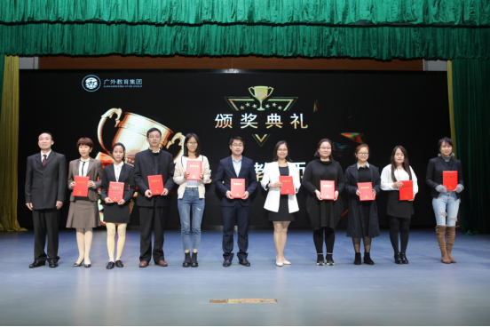 何勇斌、罗海洋、广外外校校长兼教育集团副总经理万清华、广外番禺外校校长兼教育集团副总经理徐纯依次为优秀管理团队、优秀管理奖、优秀班主任奖、优秀教师奖、优质服务奖的获奖者颁奖。颁奖典礼由教育集团副总经理黄汐主持。