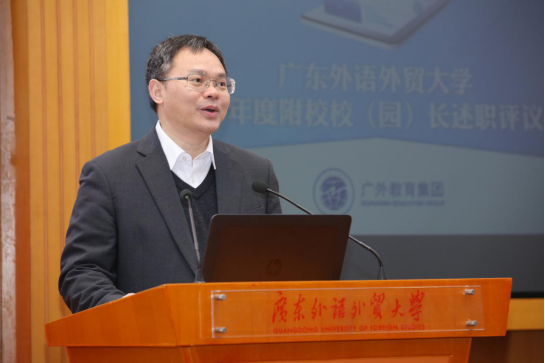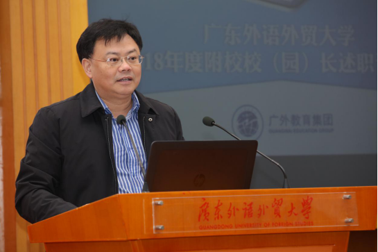 在述职环节中,广外附设外语学校校长万清华、广外附属中小学校长吴玉爱、广外肇庆外校校长周小飞、广外佛山外校校长方建军、广外河源外校校长毛南辉、广外大亚湾外校校长杨如华、广外从化实验小学校长黄建华、广外番禺外校校长徐纯、广外江门外校校长曹旭飞、广外增城实验学校副校长艾蒲林、广外佛山君御幼儿园园长周宇、广外幼儿园执行园长曾晓杰分别代表班子介绍了各校在教学质量提升、师资队伍建设、学校特色打造、校园环境优化、学校品牌塑造、办学效益提升等方面的工作和成绩,同时也阐述了下一步努力的方向。各学校在2018年的工作各具亮点,各有特色,共同点都是办学得到家长和社会各界的认可,口碑越来越好。