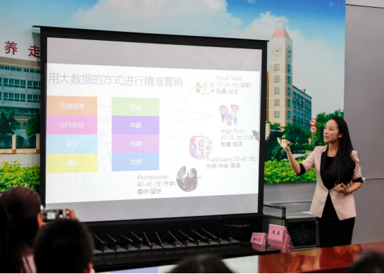 在经验交流阶段,资深品牌营销专家陈天琪以教育机构为例介绍了在互联网营销时代如何运用搜索引擎、电商平台、社交媒体以及新闻客户端等平台捕捉巨大的机会点,做好教育品牌营销。