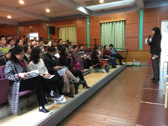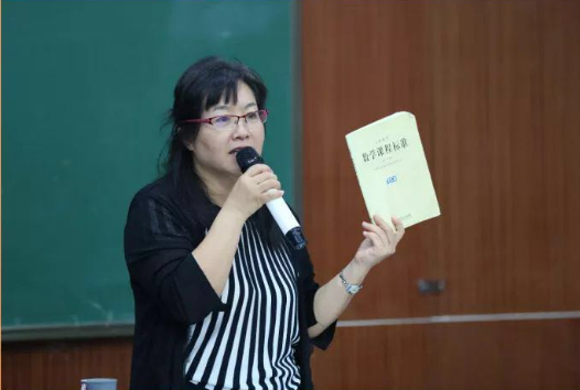 陈静安从援引“数学课程标准”入手,指出了数学教学要处理好数学与生活的联系,要处理好数学知识之间的联系,要培养学生数学兴趣、养成良好习惯、认识数学价值。针对基本知识、基本技能、基本数学思想方法和基本活动经验这“四基”教学任务,她指导老师们如何进行高质量数学课堂设计。在分析了中学数学评估中出现的问题后,陈静安给出了具体的对策和建议:加强教学标准的研读;分析教材把握关键知识点和逻辑关系;注重复习加强知识之间的联系;少用PPT,精心设计板书等。