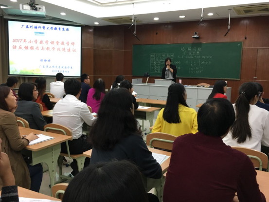 为全面促进各附校课堂教学质量,凸显广外“轻负荷、高质量”的教学品质,今年5月,教育集团组织专家对广外各附校进行了大面积的数学课堂评估,5所附校一共听课120节,听课率达到83%。11月16日和11月30日,教育集团教师发展中心分别组织了小学和中学数学评估专场反馈会。会上,据评估组专家反馈:“广外附校小学数学教学整体水平高于广东省水平”。