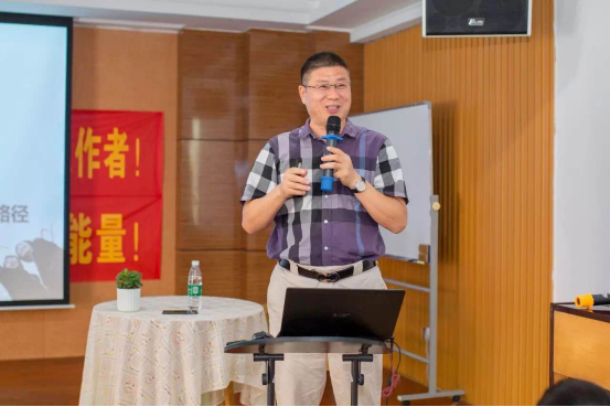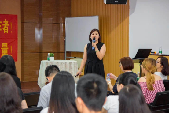 教育集团总经理孙建军为新教师详细地介绍了广外附校发展的历史、背景和现状,介绍了广外附校的“五个统一”,即统一办学理念、统一品牌形象、统一教师培训、统一招生宣传、统一考核标准,提出打造民办基础教育领导品牌的使命。他特别强调团队建设的重要性。他表示广外教育集团将秉持信念价值观(公平、行动、创新、团队、诚信)引领学校的发展。最后,孙建军提出新教师应该坚信“信念”价值观,努力提高自身“自驱力、自控力、追随力和感召力”的明确要求,也结合案例指导新教师如何有效提高行动力,将我们的教育理念和价值观付诸实践。