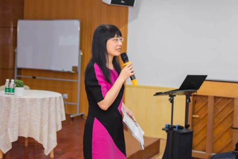 广外外校小学部教学处副主任周英以自己的教学特色,生动形象地为教师们分享了如何打造高效英语课堂,如何提升学生学习英语的兴趣。