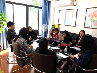 管理者访谈由教育集团副总经理、教师发展中心徐纯主任主持。通过访谈主管教学领导和英语教研组长,了解学校育人目标定位与落实、英语学科和师资队伍建设与管理、英语教学质量与影响力等情况。
