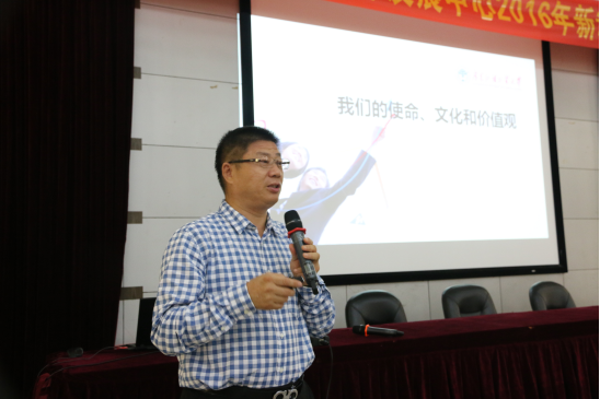 孙建军首先对新教师加入广外附校大家庭表示热烈欢迎,并做了题为《我们的使命、文化和价值观》的主题演讲。孙建军介绍了广外附校发展的历史、背景和现状,引出广外附校的“五个统一”(即统一办学理念、统一品牌形象、统一教师培训、统一招生宣传、统一考核标准),提出打造民办基础教育领导品牌的使命和指出国际化的必由之路。之后,孙建军首次提出FAITH的价值观,他表示教育集团将秉持公平(F- fair)、行动(A- action)、创新(I- innovation)、团队(T- teamwork)、诚信(H-honesty)的价值观引领学校的发展。孙建军还结合自己的工作经历和经典案例,与新教师交流如何有效提高行动力。