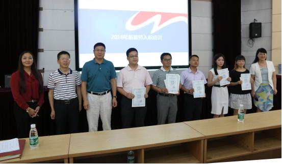 培训中间,举行了唱校歌、戴校徽活动。在广外校歌《凤鸣岭南》的优美歌声中,孙建军、万清华、吴玉爱、徐纯等为新教师佩戴上广外校徽,欢迎老师们加入广外附校大家庭,欢迎老师们成为“广外人”!