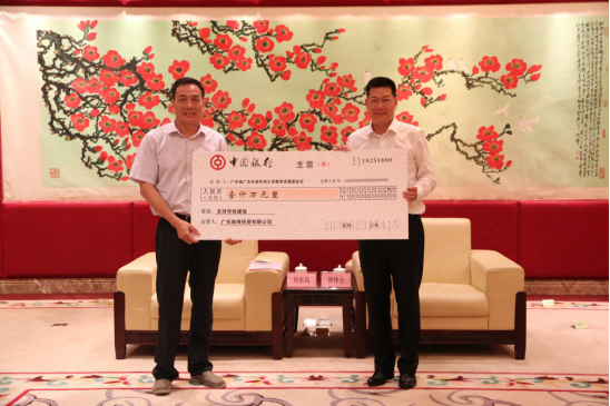 本网讯 7月1日下午,在中国共产党成立95周年之际,广东南博投资有限公司向我校捐款人民币1000万元,用于支持我校教育事业的发展。