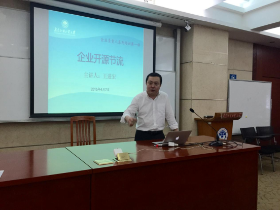 本网讯 4月7日下午,教育集团(广外资产经营公司)首场为专为企业负责人开展的培训讲座在北校区六教103举行,广外资产经营公司独立董事、北明软件副总裁王进宏就企业如何开源节流创造利润和我校校办企业负责人做了交流。讲座由教育集团总经理孙建军主持,我校6家企业的部分员工代表也聆听了该讲座。