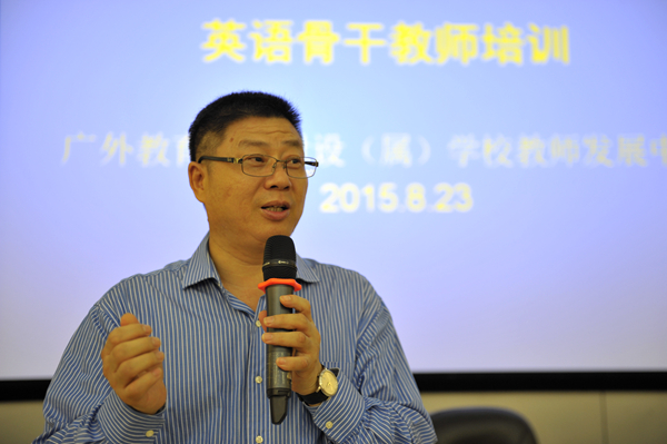 本网讯 8月23日,由广外基础教育教师发展中心主办的英语骨干教师培训会在广外外校阶梯教室举行,我校5所附设(属)学校的100多名英语教师参加,培训由广外附设外校副校长方建军主持。