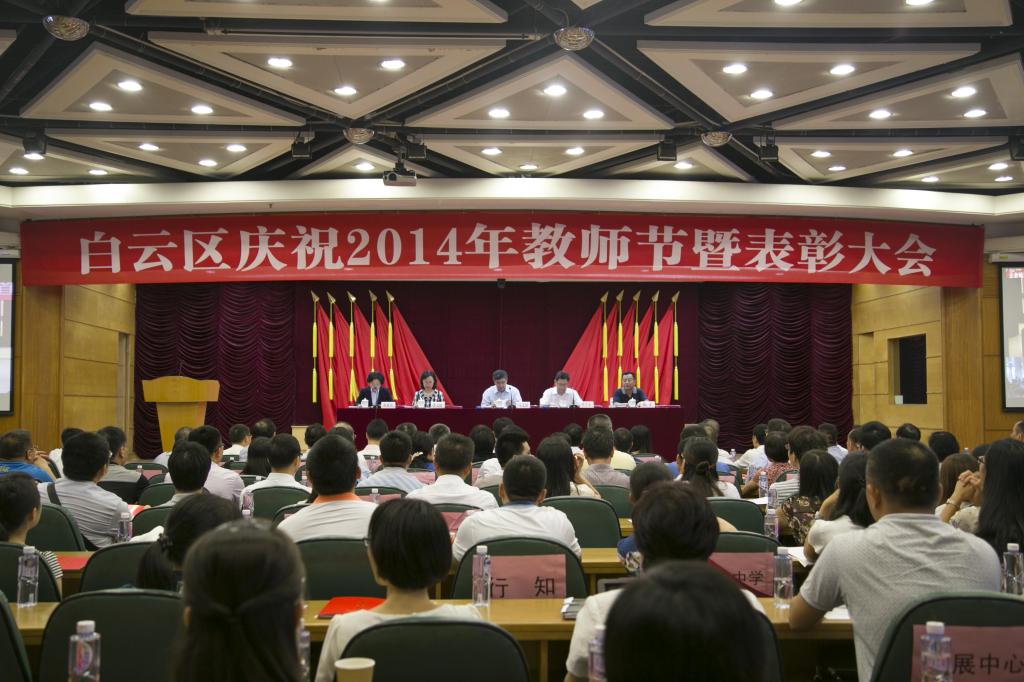 本网讯 9月10日,白云区委、区政府召开庆祝2014年教师节暨表彰大会,对区优秀教师、教育工作者,民办学校优秀投资者、办学特色引领者进行表彰,副校长顾也力和教育集团总经理孙建军出席表彰大会。会上,我校荣获“2014白云区民办优秀投资者”称号,顾也力被授予“2014年白云区民办学校办学特色引领者”称号。