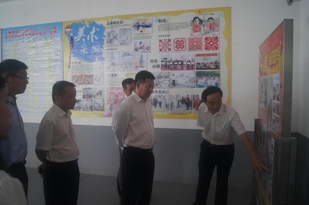 授牌仪式前,仲伟合、陈林汉、孙建军等一行在增城外校王承明校长的陪同下视察校园,并到教师办公室看望慰问教师。仲伟合对增城外校先进完善的硬件设施和团队风貌给予高度评价,特别在“翰墨长廊” 驻足欣赏,对学生的水墨画作品啧啧称赞,认为这些作品“有的气势磅礴,有的精致细腻,有的天真率性,有的灵秀隽美,无不饱含着同学们对生活积极向上的追求和对美好未来的向往,展现出一种可贵的创造力与生命力,而这正是‘全人教育’的目的与意义所在。”