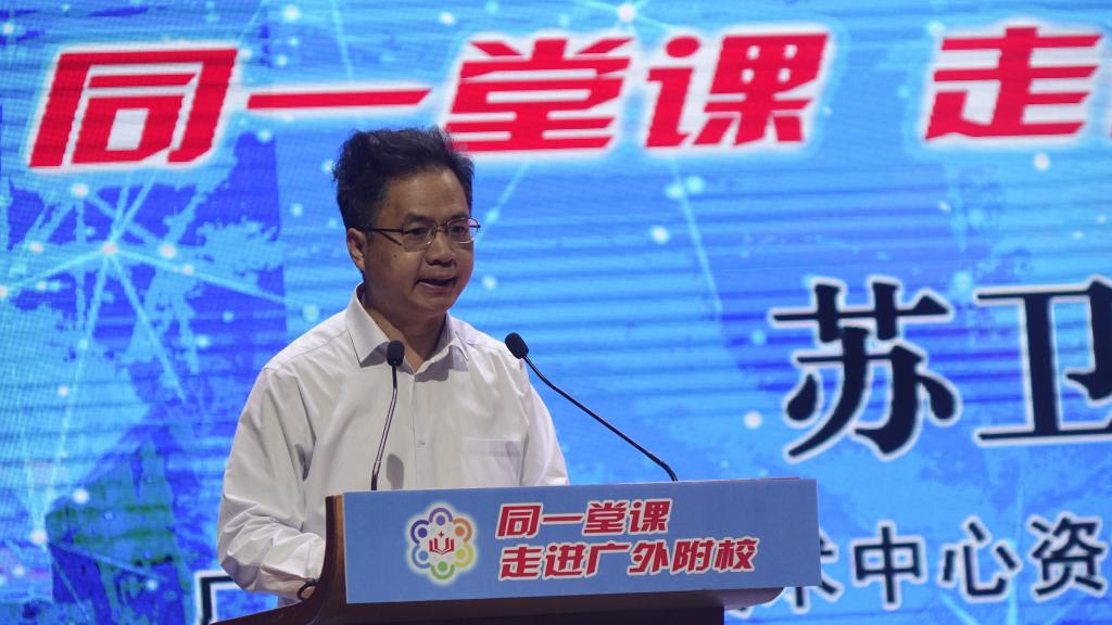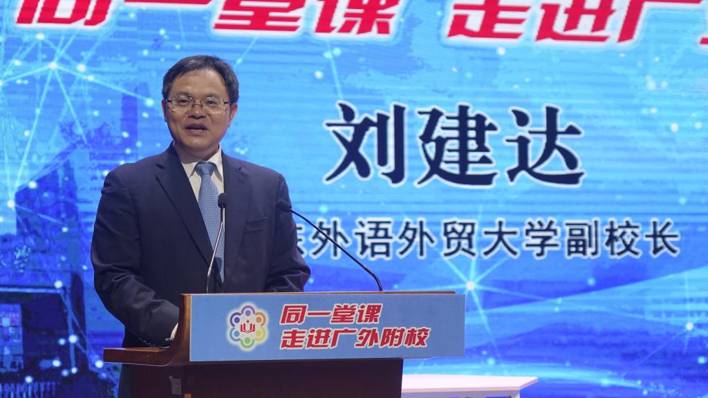 会上,广东省教育研究院副院长李海东、广东省教育技术中心资源建设部副主任苏卫、广东外语外贸大学副校长刘建达相继致辞。