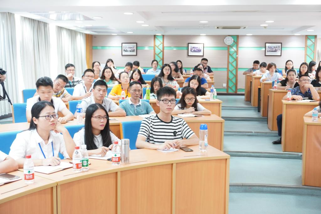 英语组在下午的课程中聆听了广东外语外贸大学英语教育学院杨满珍教授主讲的《核心素养视觉下的英语教学与评价》。杨满珍为英语教师们解读了从2010年-2017年国家关于课程改革的纲领性文件,深度剖析了国家对英语教学的相关方针与政策,同时讲解了国家在2018年正式发布的《中国英语能力等级量表》。晚上,广东外语外贸大学文科基地的蔡宏文教授为新教师主讲《在试题分析中应用语言测试基本概念》,为了让老师们有更加直观的认识,蔡宏文引用了大量的真题测试分析。他让老师明白了题目质量直接影响信度和效度,试题分析有助于提高教学效率。