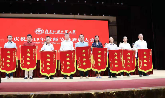 9月5日,广东外语外贸大学在云山会堂举行了隆重的教师节表彰大会,会上表彰了2018-2019学年大学先进集体,教育集团因在该学年成绩突出而获评,教育集团副总经理黄汐代表集团上台领奖。