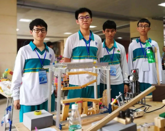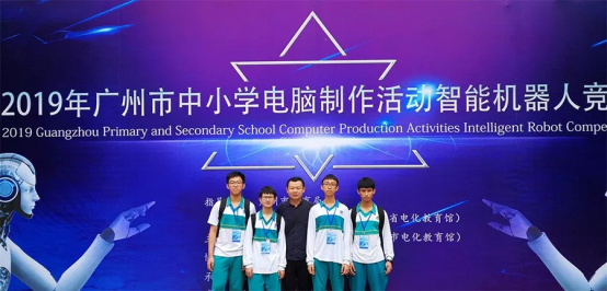周秋文(右一)参加“2019年广州市中小学电脑制作活动智能机器人竞赛”
