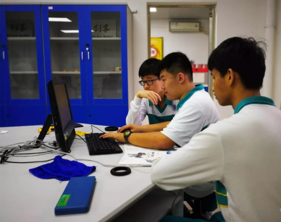 周秋文同学在学校里是“活跃分子”,繁忙的学习之余还兼任着学校创客社团骨干、学生会宣传部干事、班级电教设备管理员等多重身份。在老师的眼里,他又是一个“内敛男孩”,属于埋头苦干型。“他每天下午都泡在创客实验室,捣鼓着自己的发明创造。他话不多,比较专注,是社团中为数不多的从高一一直坚持到高三的孩子。”广外外校高中部通用技术教师、创客社团指导老师陈顺兵告诉记者。