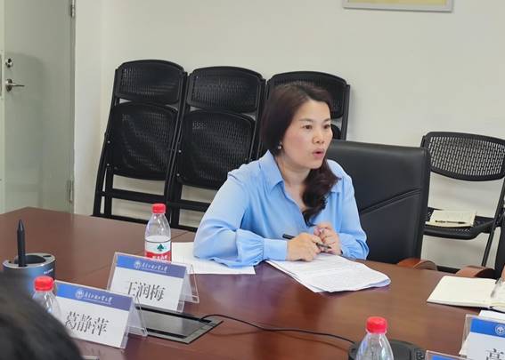 王润梅在汇报中总结了自己的挂职工作目标以及目标完成情况。在挂职附属中小学期间,认真观摩了学校的运营及管理;了解了基础教育英语教学生态;参与组织了学校各校校园文化活动;负责中小学部英语教学全面管理工作,推动了学校英语课程建设。