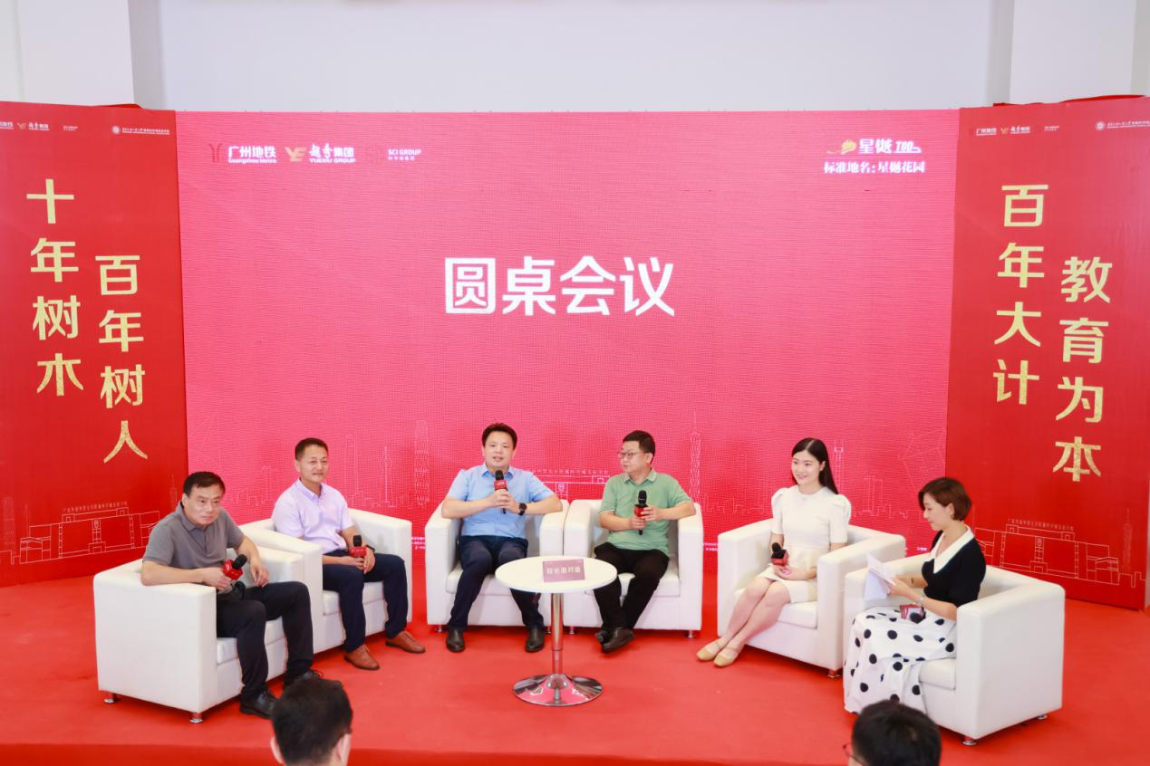 签约仪式后,现场举办了圆桌会议,广外附属科学城实验学校校长周小飞,副校长庞证明、陈常林,资深教师陈慧玲,“老胡侃升学”主笔老胡共同就当下教育问题及家长们关心的一些问题进行了解答。