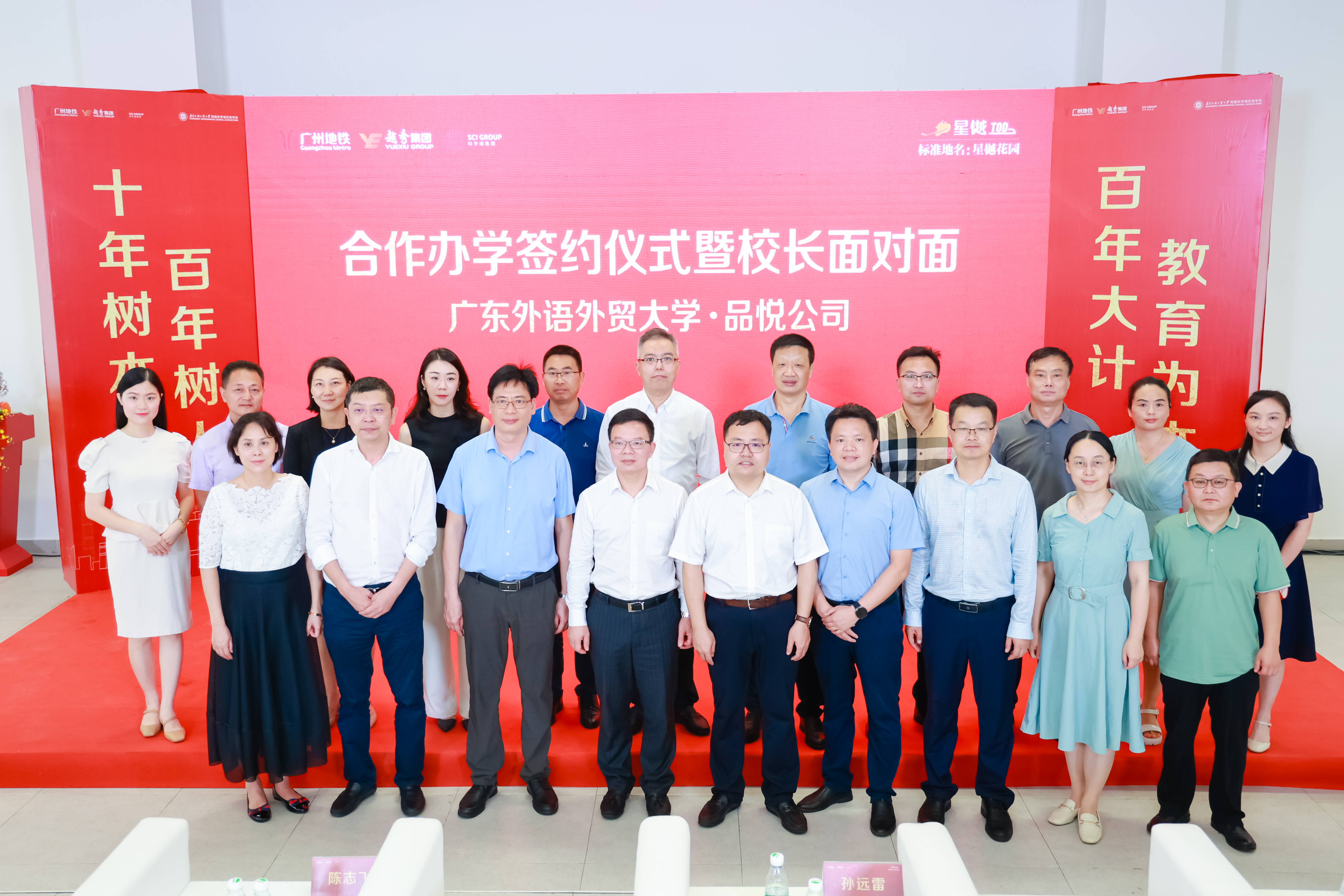 6月17日上午,广东外语外贸大学·品悦合作办学签约仪式暨校长面对面活动在广东外语外贸大学附属科学城实验学校(以下简称:广外附属科学城实验学校)多媒体会议室举行。广外教育集团、越秀集团、广州地铁集团领导等代表见证了本次活动。广外教育集团总经理孙远雷、副总经理余海波及广外附属学校部分校长代表出席了仪式。