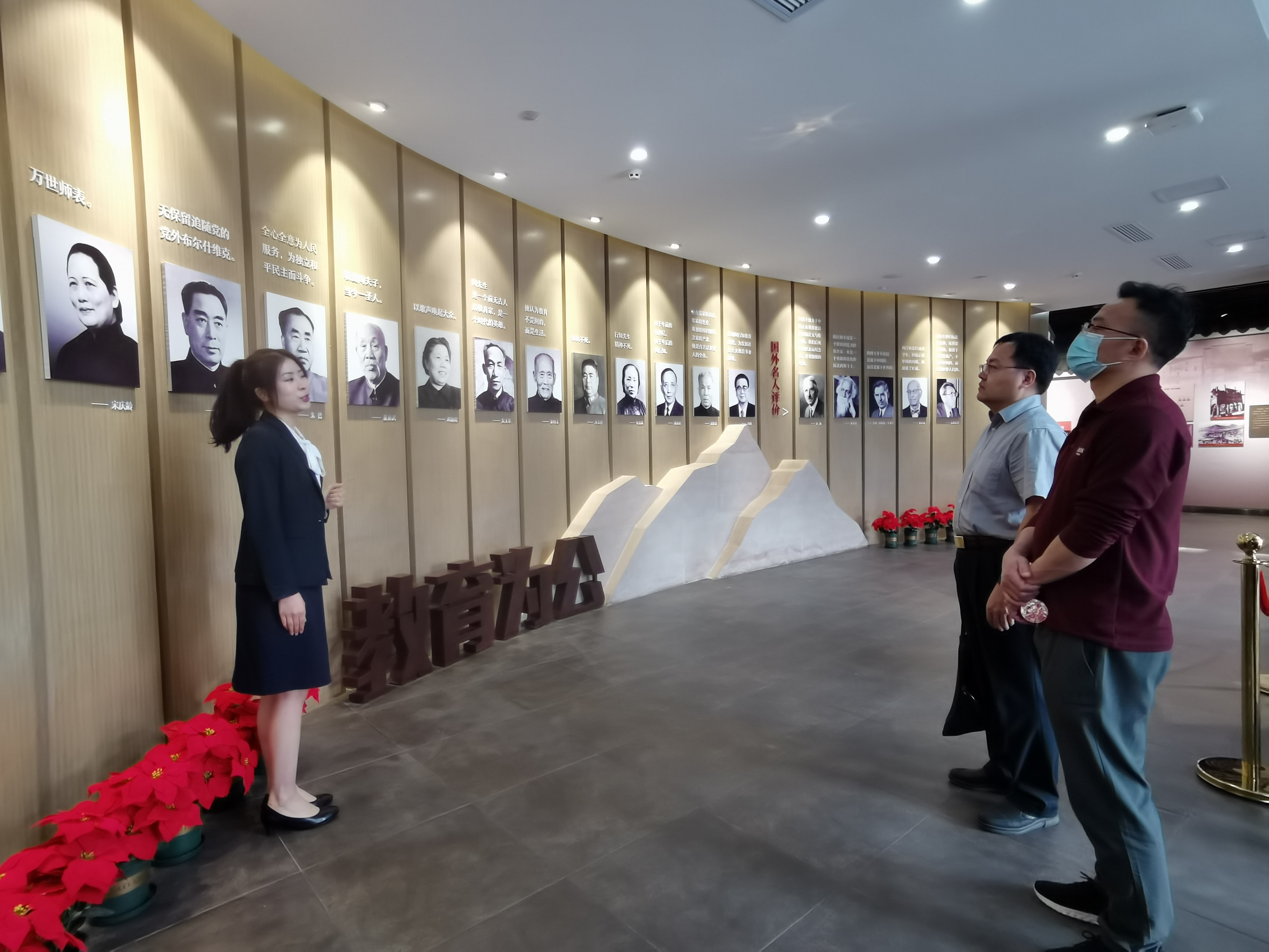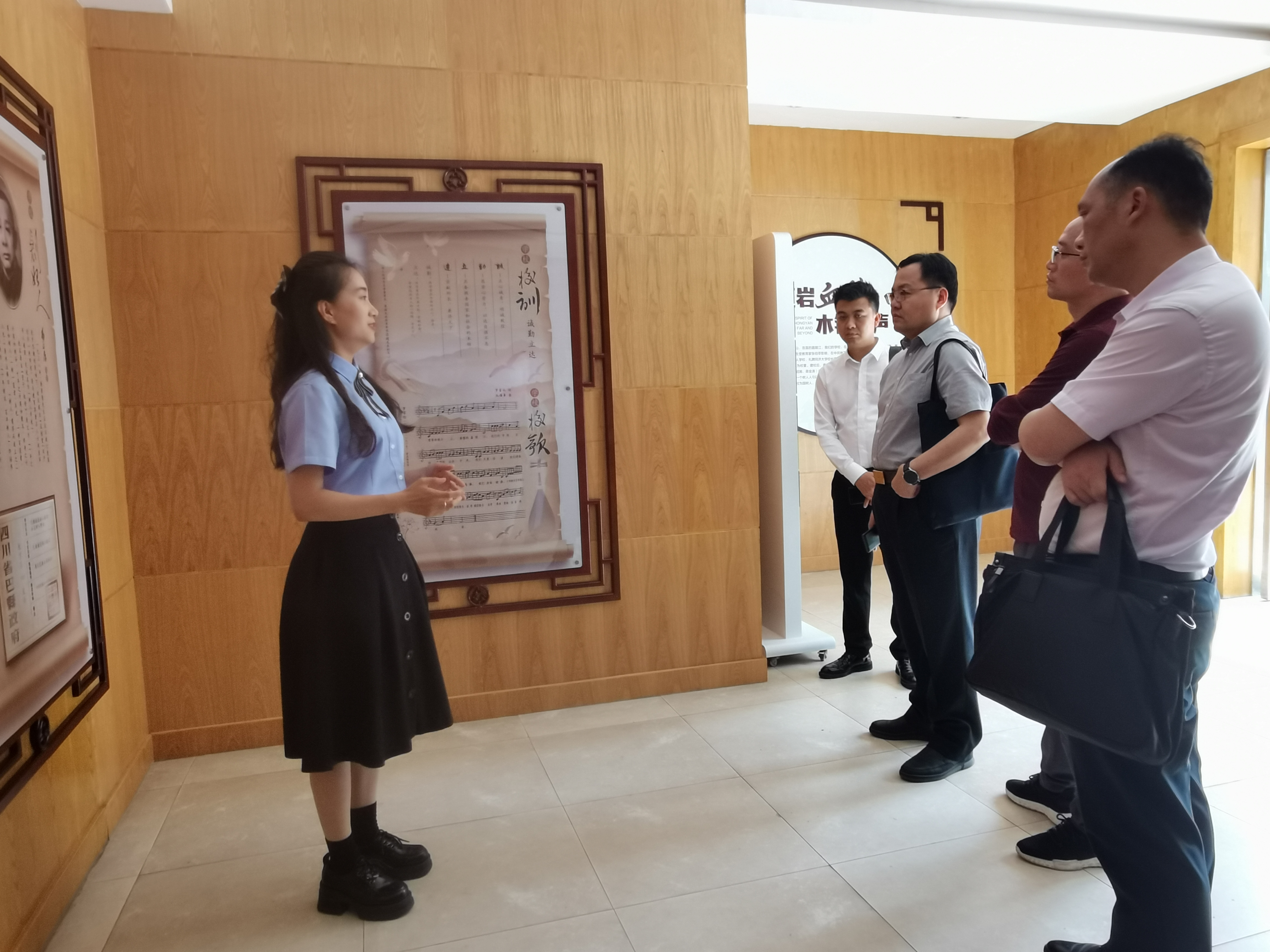 树人学校校园环境优美,建筑错落有致,育人氛围浓厚。校长们在校史展示区驻足,引导老师详细讲解了学校的红岩血脉、诚勤立达的校训和八条立校精神。