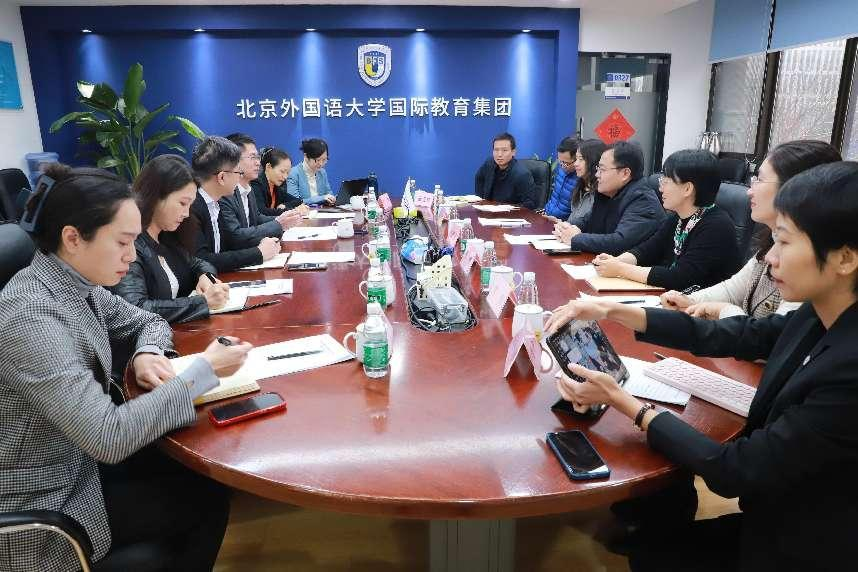 12日上午,孙远雷一行来到北外国际教育集团进行调研,北外国际教育集团总经理李国辉等向广外教育集团与会人员详细介绍了北外国际的四大业务板块——教育合作、国际课程中心、学生赛事活动以及基础教育测评,双方就以上四个方面及教师发展等问题展开了深入的交流和讨论。