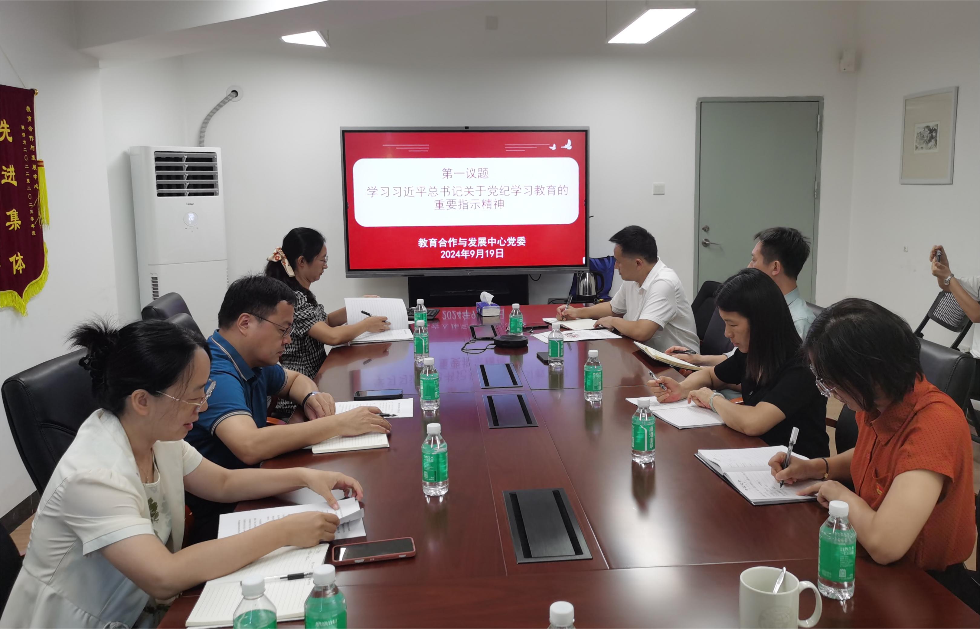 9月19日上午,教育合作与发展中心党委在后勤楼427会议室召开党委扩大会议,专题学习习近平总书记关于党纪学习教育的重要指示精神并就党纪学习教育开展情况进行总结梳理。中心党委委员、纪委委员、各支部委员参加了会议,会议由中心党委书记孙远雷主持。