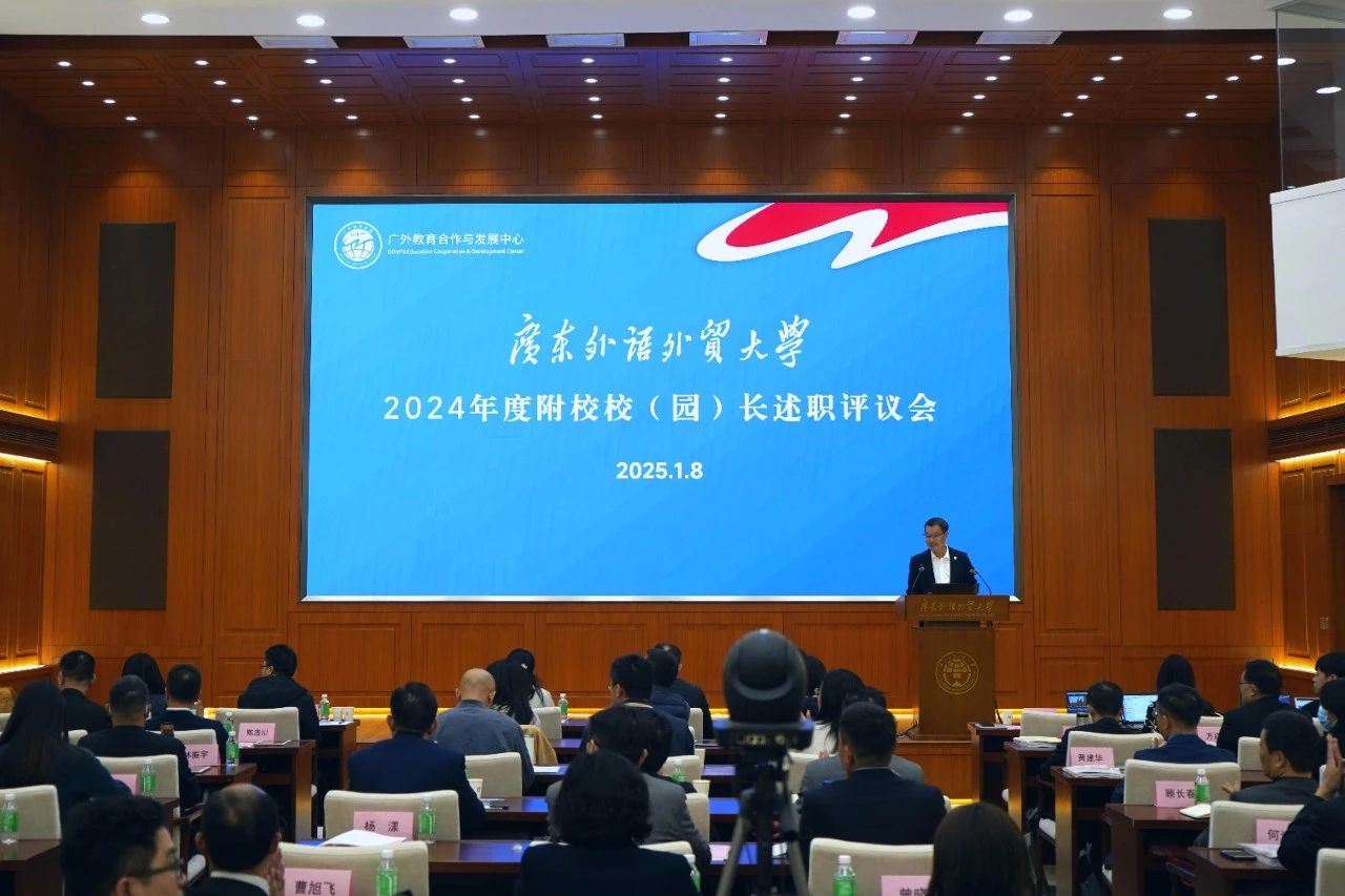 1月8日下午,教育合作与发展中心2024年附校校(园)长述职评议会在大学白云山校区国际会议厅举行。广东外语外贸大学副校长刘建达致辞并为新开办3所学校授牌,21所中小学以及幼儿园的校(园)长分别述职,广外教育合作与发展中心党委书记、主任孙远雷作总结讲话并布置2025年工作。