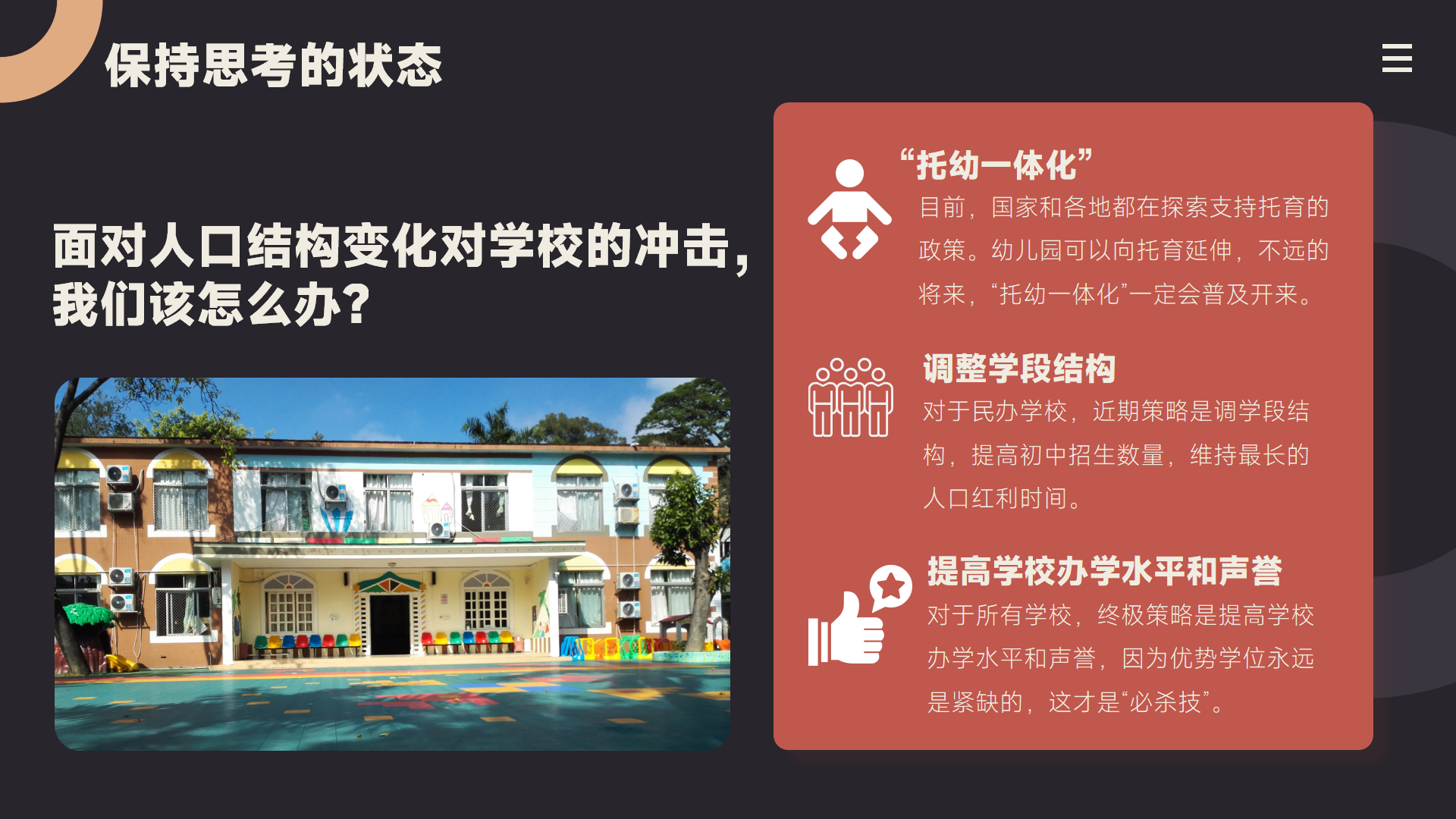最后,孙远雷倡导教育者要保持思考,如应对人口结构变化,民办校调学段、各校提水平;坚持奋斗,抵御教育 “降级” 与 “平替”;秉持乐观,直面教育 “陌生感”,把握好特色塑造与人才培养节奏。