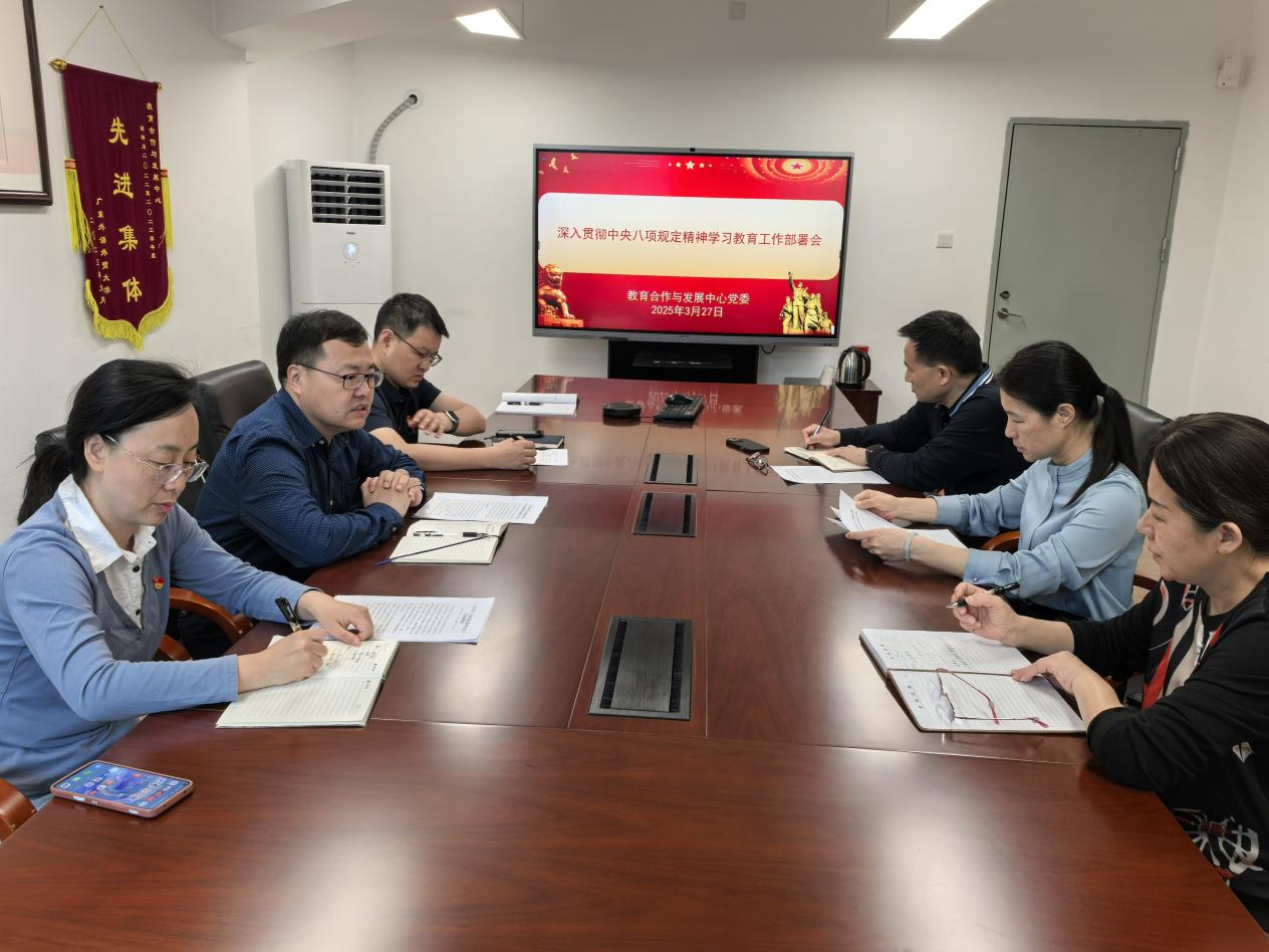 3月27日,教育合作与发展中心党委召开深入贯彻中央八项规定精神学习教育工作部署会,中心党委委员、纪委委员参加。会议由中心党委书记、主任孙远雷主持。