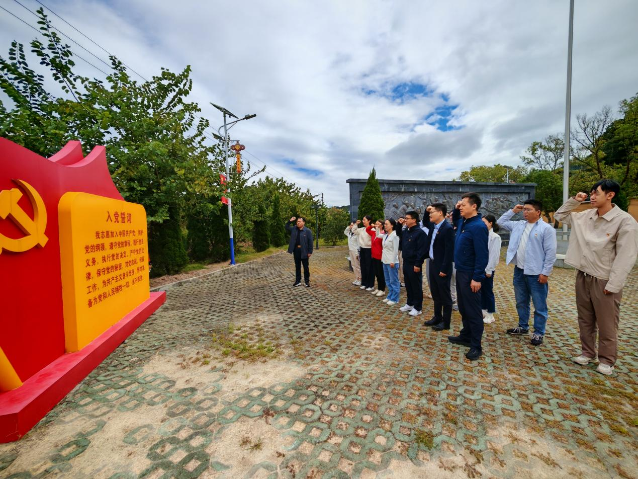 活动首站,党员同志们走进秦皇山革命根据地,在秦皇山革命根据地纪念馆内,聆听了“永远的丰碑”专题微党课。通过详实的文字史料、珍贵的历史照片与生动的场景还原,党员们感悟中国人民解放军粤桂湘边纵队、秦皇山根据地游击队为民族解放事业抛头颅、洒热血的峥嵘岁月与家国情怀。党课后,党员一行怀着崇敬之心前往纪念碑前缅怀先烈,并面向鲜红党旗重温入党誓词,铿锵誓言回荡山间,进一步坚定了“为人民服务”的初心使命与砥砺奋进的理想信念。