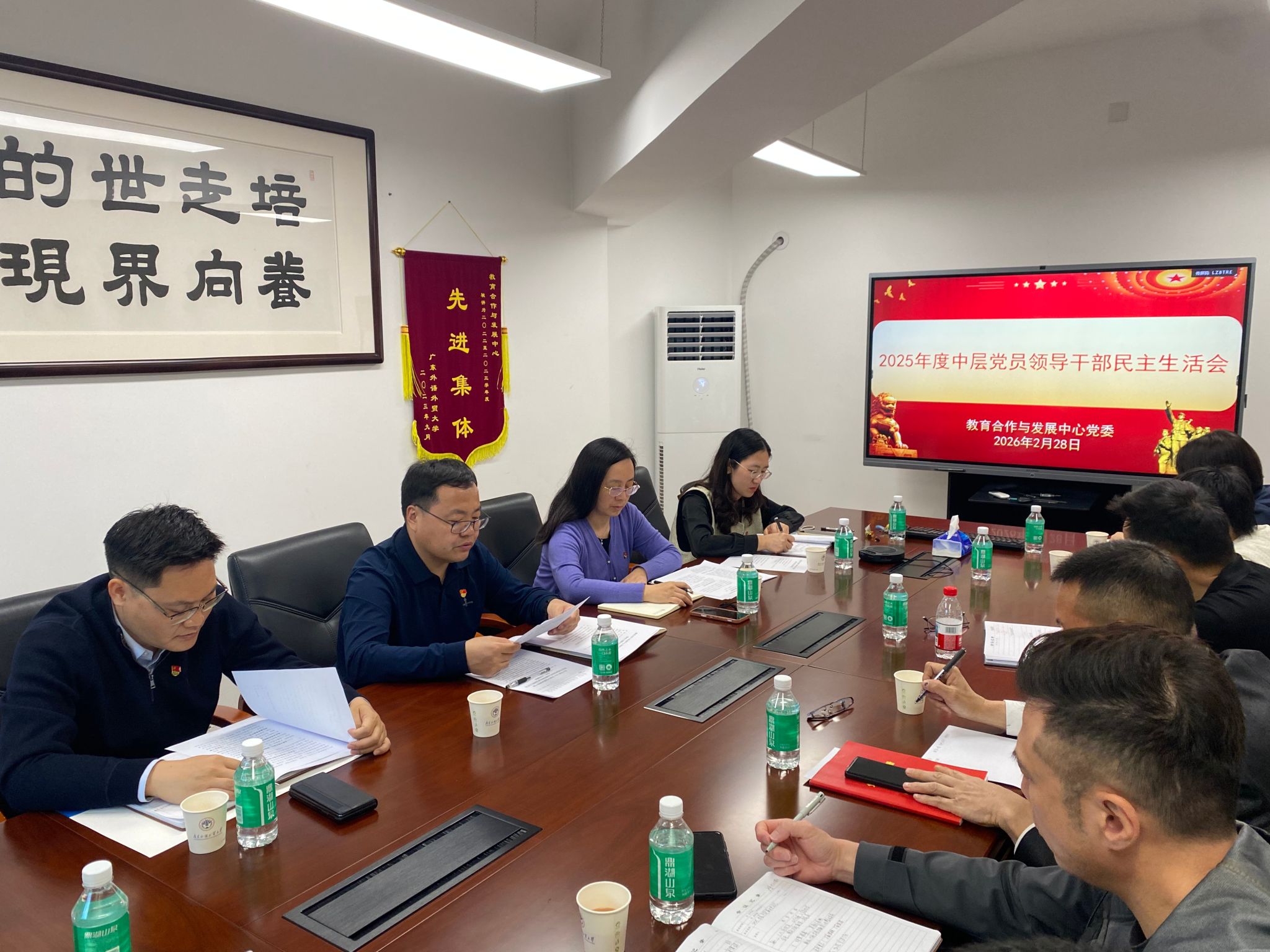 2月28日上午,教育合作与发展中心党委在白云山校区综合楼427会议室召开2025年度中层党员领导干部民主生活会。中心班子全体成员参加会议,中心党委委员、纪委委员、中心机关科长、其他各单位负责人列席会议。会议由中心党委书记孙远雷主持。