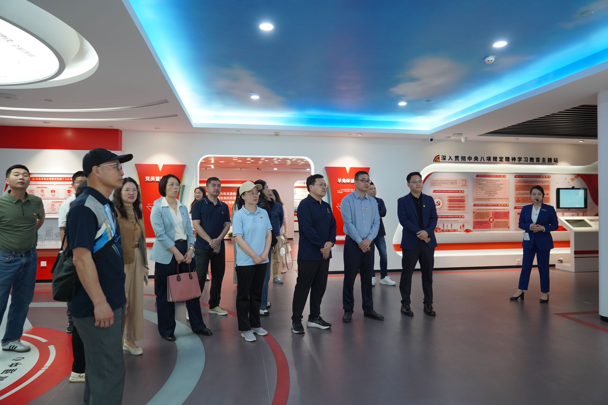 党员们先行参观了广州地铁红色羊角党建基地。在讲解员的引导下,大家登上了党建要素与地铁元素高度融合的“红色专列”,依次经过“羊角信号灯”“羊角列车头”“羊角列车厢”“羊角屏蔽门”“羊角体验站”等区域,观摩了“红色羊角”全域智慧党建系统平台,实地感受了广州地铁集团党建与业务发展的双融合、双促进。