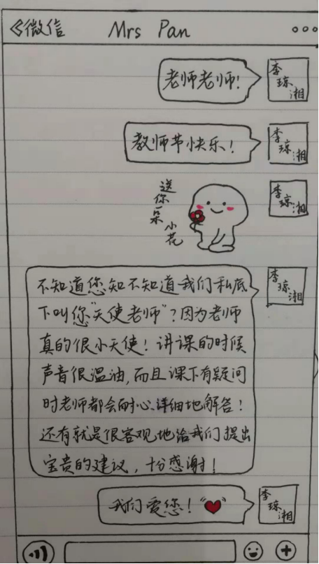 学生写给潘老师的小纸条