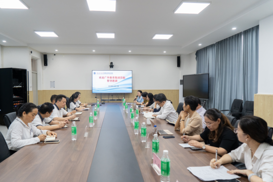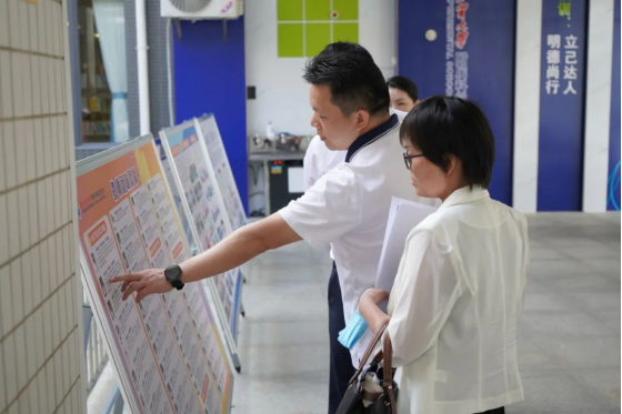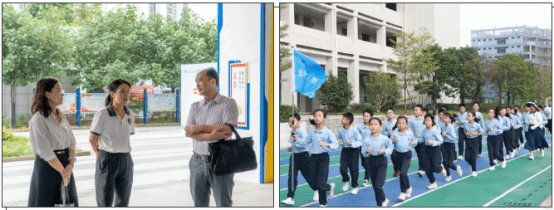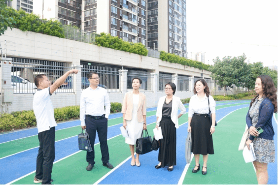 广外附属科学城实验学校校长周小飞携学校行政团队热烈欢迎视导组的到来。视导组分别对学校的日常管理、校园文化、功能场室等进行全方位的视导检查。