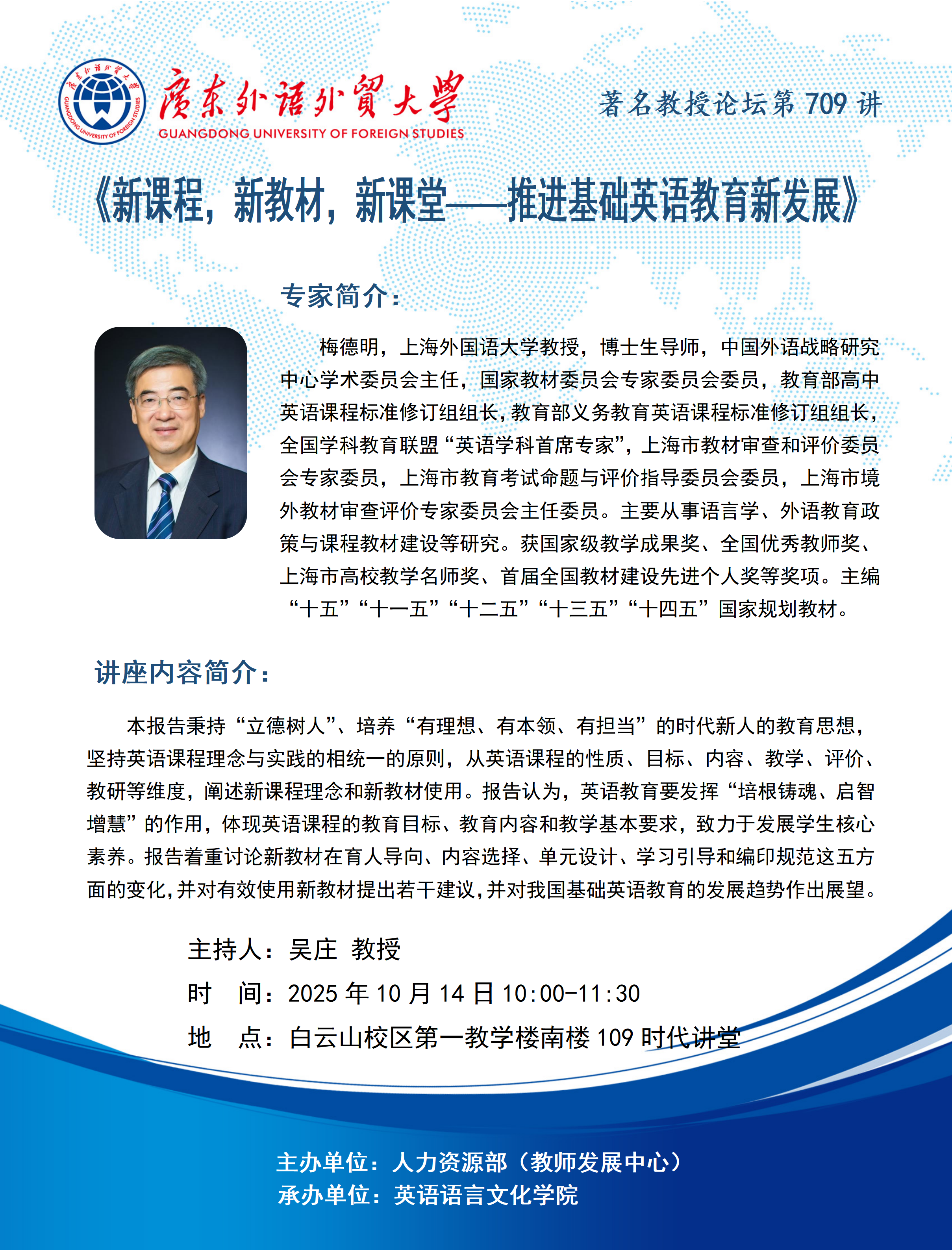 讲座预告| 梅德明:新课程,新教材,新课堂、推进基础英语教育新发展