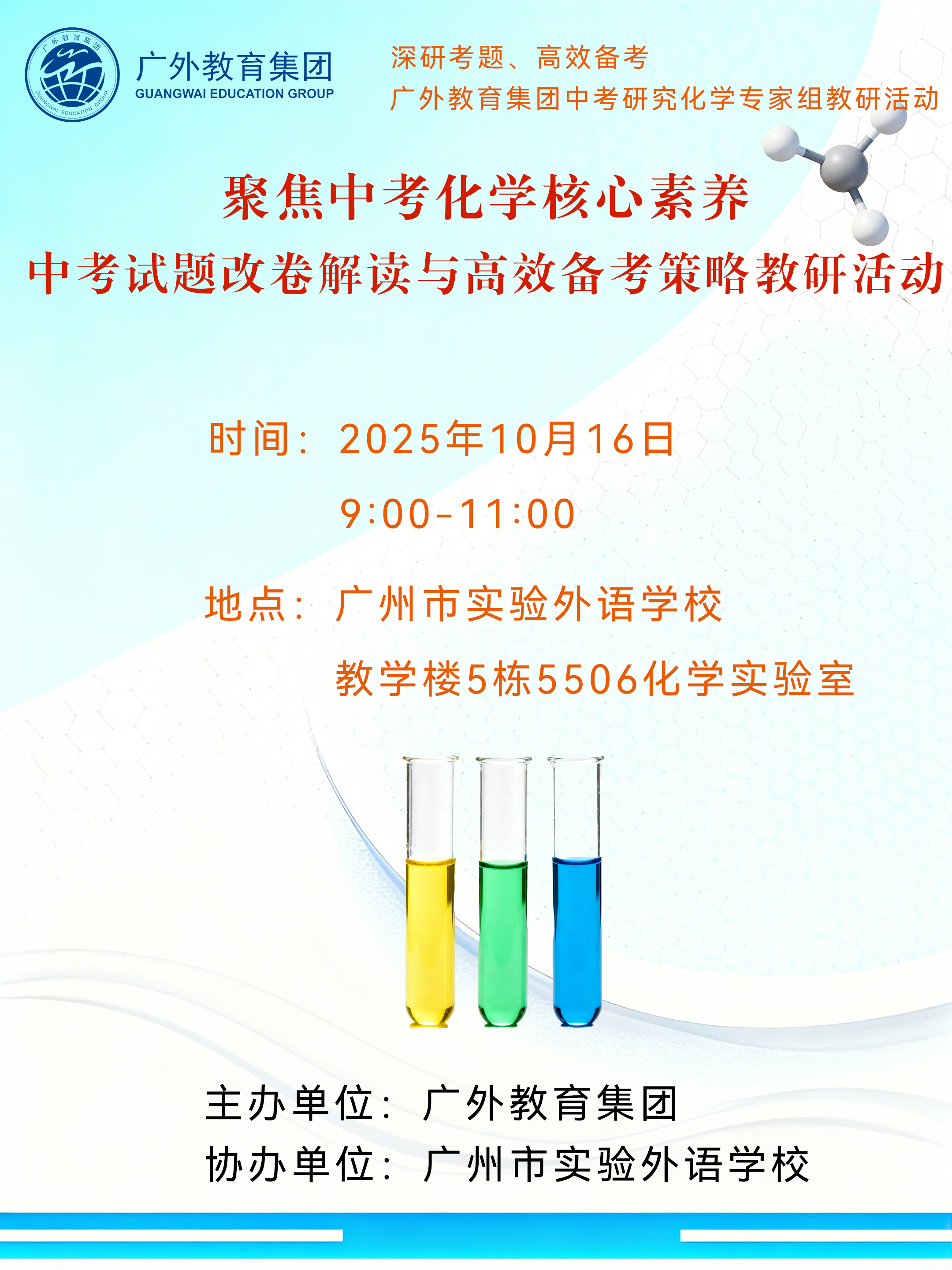 活动预告| 聚焦中考化学核心素养中考试题改卷解读与高效备考策略教研活动