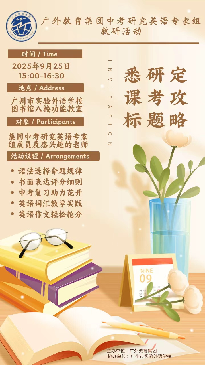 活动预告| 广外教育集团中考研究英语专家组教研活动
